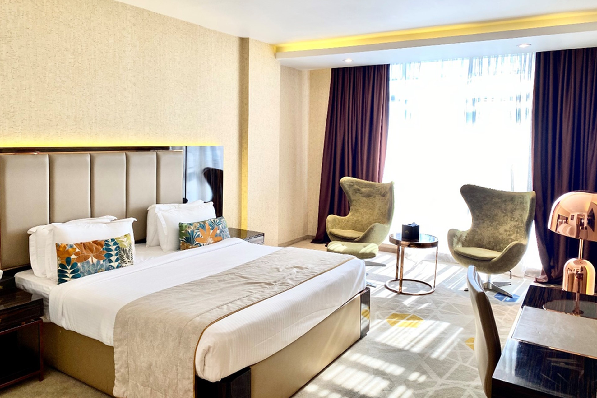 Bienvenue dans notre chambre Club , Découvrez le raffinement ultime dans notre chambre 4 étoiles, où l’accueil chaleureux rencontre le confort. Immergez-vous dans une vue panoramique captivante au coeur d’Alger, baignant la pièce de lumière naturelle et créant une atmosphère chaleureuse. Le lit, véritable sanctuaire du repos, vous enveloppe dans un cocon de douceur avec des tissus soigneusement choisis, assurant des nuits de sommeil inégalées. Les bois prestigieux qui ornent l’espace ajoutent une touche d’élégance, créant une harmonie parfaite entre modernité et tradition. Chaque détail a été méticuleusement pensé, des équipements haut de gamme à la moquette de qualité sous vos pieds, offrant une expérience tactile exquise. Bienvenue dans l’harmonie du luxe et du confort, où chaque instant dans notre chambre Club est une célébration du bien-être et de l’élégance.