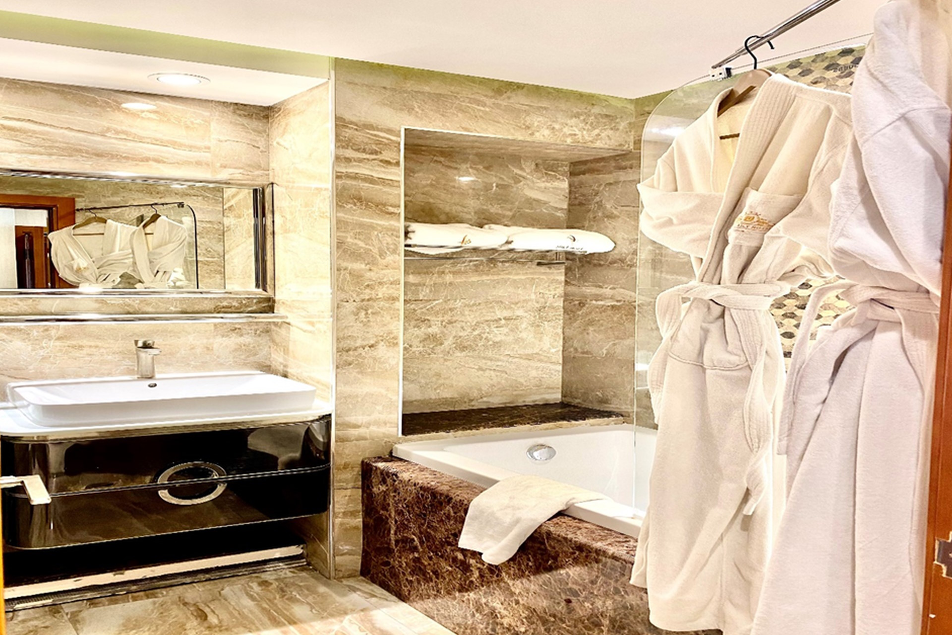 Bienvenue dans l’élégance sans égale de notre Suite Senior, un confort somptueu au sein du prestigieux hotel Ferdi Lilly . Cette suite offre un espace généreux, avec une chambre exquise dotée d’un lit king-size pour vous envelopper dans le luxe ultime. Le raffinement se poursuit dans le salon adjacent, créant un espace de détente élégant où chaque moment devient une expérience. Deux sanitaires avec douche ajoutent une touche pratique, garantissant intimité et commodité pour vous et vos convives. Les fenêtres panoramiques s’ouvrent sur une vue à couper le souffle, inondant la suite de lumière naturelle et créant une connexion harmonieuse avec l’extérieur. Les tissus méticuleusement choisis ajoutent une touche de délicatesse, tandis que le lit, paré de confort, promet des nuits inoubliables. L’utilisation habile de bois prestigieux et d’une moquette de qualité crée une ambiance chaleureuse et intemporelle, marquant chaque coin de la suite d’une esthétique unique. Découvrez le summum du luxe dans notre Suite Senior, où chaque détail est pensé pour vous offrir une expérience inégalée au cœur de la capitale.